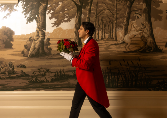 Those ravishing creatures in red? Our footmen of course, standing smartly by to carry your bags, unpack your things, or top up your cocktail while you admire the silk-lined walls of your suite.