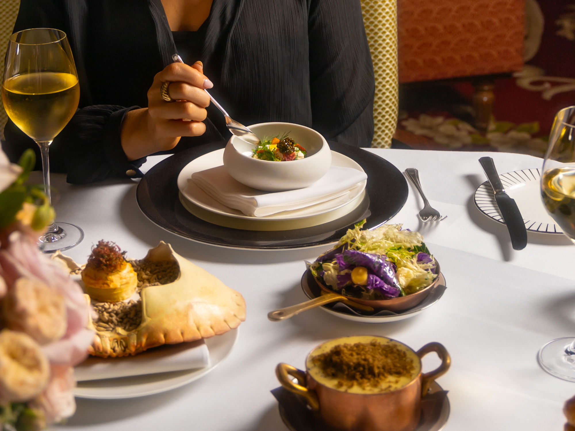 Rates include VAT, overnight accommodation, three-course dinner from a set menu, glass of Champagne each and petits fours and breakfast for two. Subject to availability and seasonal blackout dates. A discretionary 5% service charge will be applied to the room rate on your final bill.