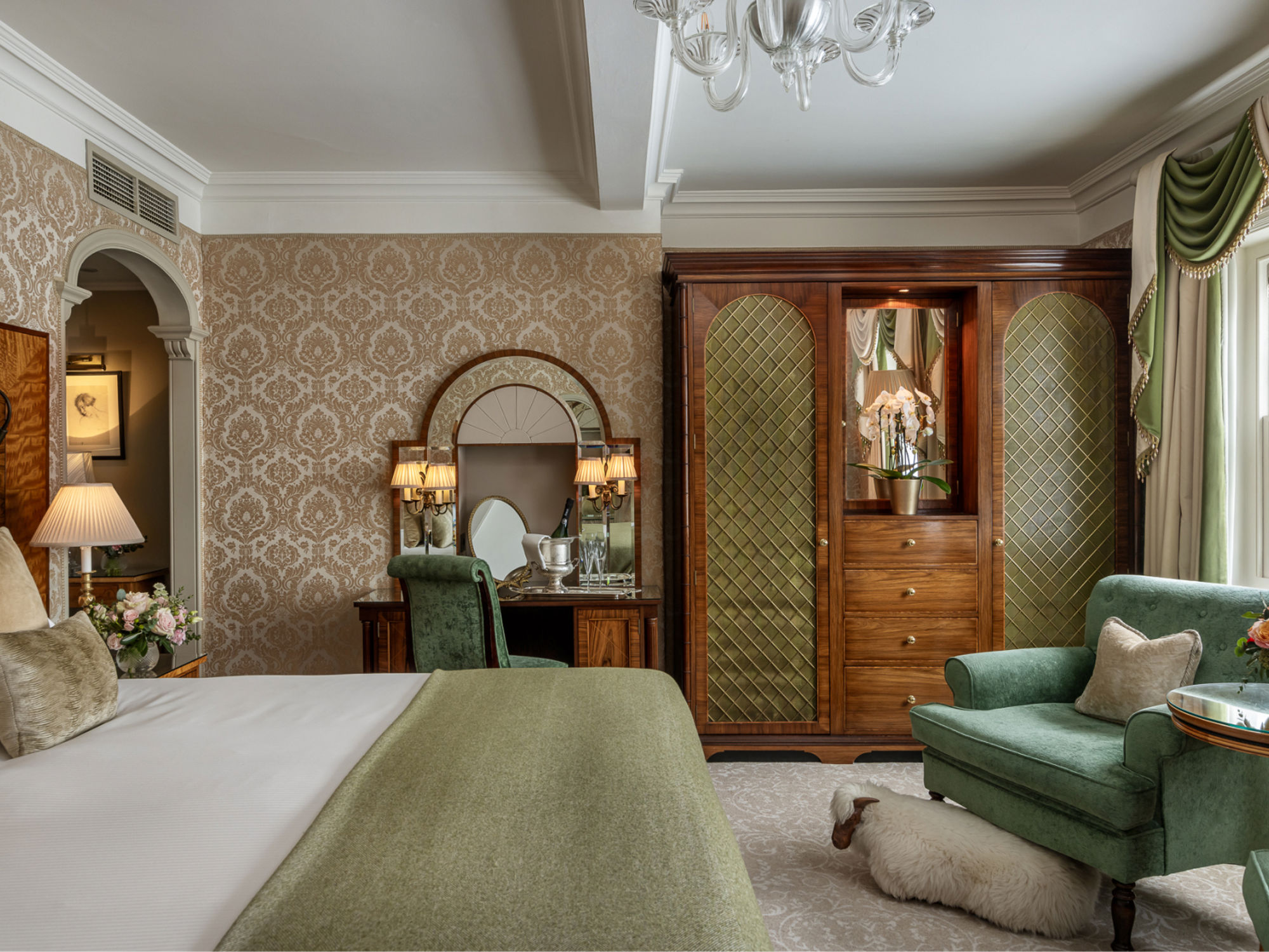 Hand-made furniture makes its home amongst Gainsborough silk-lined walls, while a large marble bathroom with separate walk-in shower, seating area and abundance of natural light lends these suites a sense of serenity that almost shouldn’t be allowed in central London.