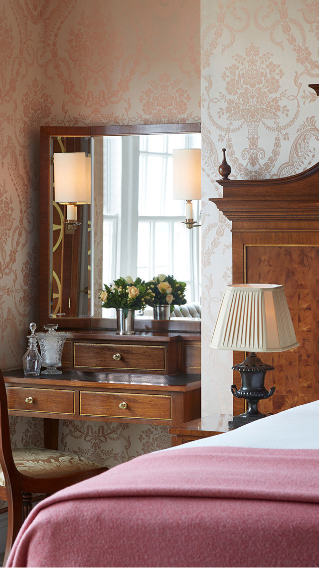 Bathed in natural light, The Garden Suite overlooks our manicured lawns and English flower-filled borders – one of London’s largest and, dare we say, loveliest private gardens. Inside, Gainsborough silk-lined walls, fine Italian linens and bespoke furniture set a (very) elegant scene, while the sitting room is the perfect place to kick off your shoes after a day’s gallivanting about town. Just in time for cocktail hour…